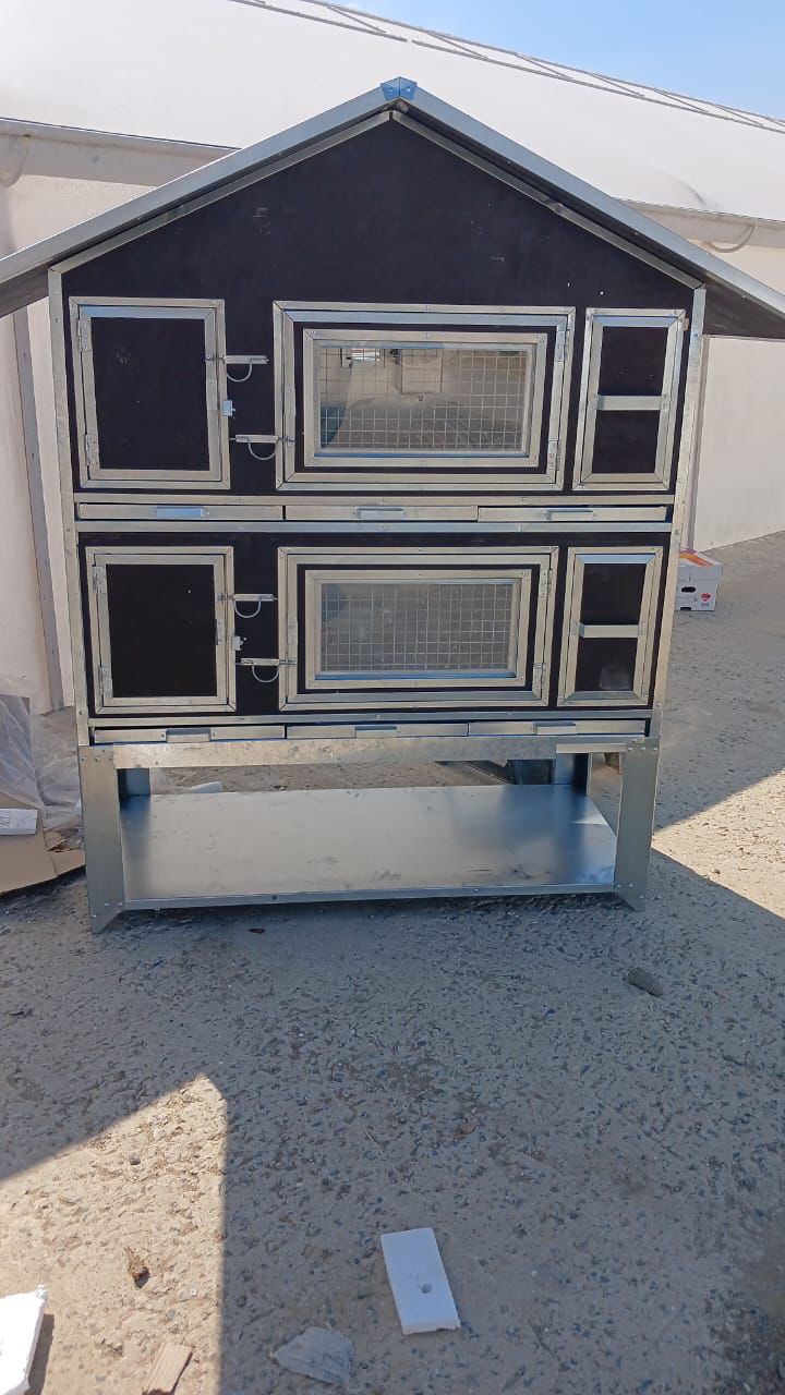 В комплекте на каждый ярус: поилка, сенник, кормушка, поддоны из оцинковки, патрон для керамического нагревателя, листы из прозрачного монолитного поликарбоната для окон.