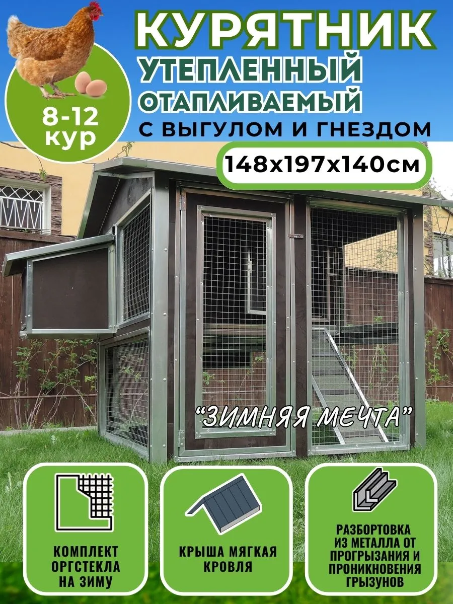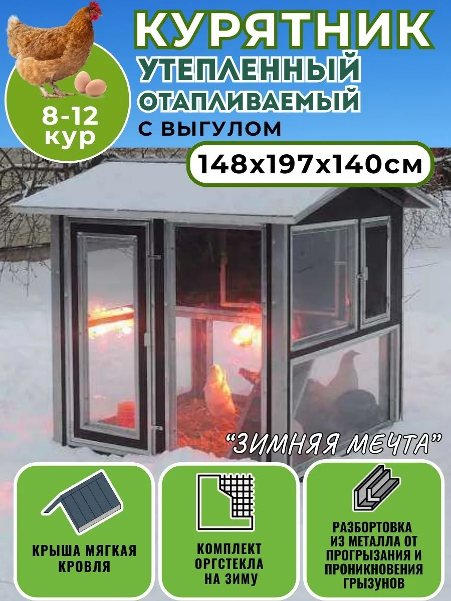 Утеплённый отапливаемый домик с выгулом "Перекати поле" на 8-12 кур